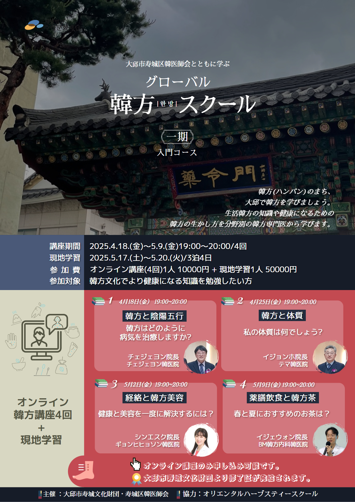 ✅グローバル韓方スクールオンライン講座4回+大邱現地学習ご参加の方: